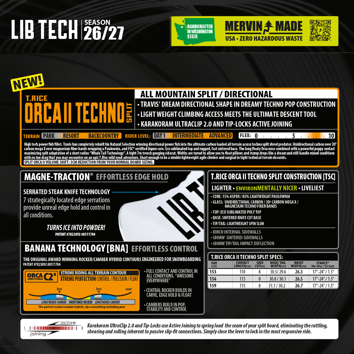 Tabla SnowBoard Lib Tech ORCA II TECHNO SPLIT (PV)